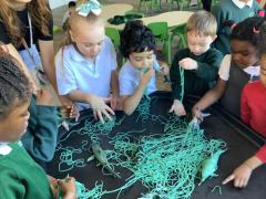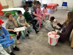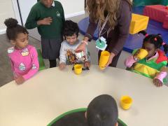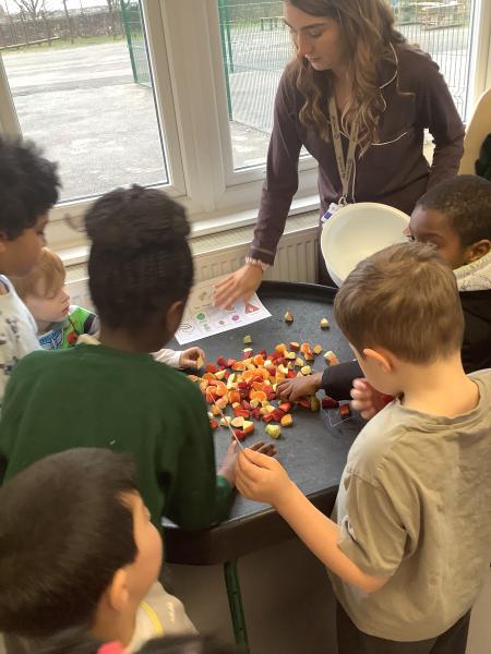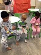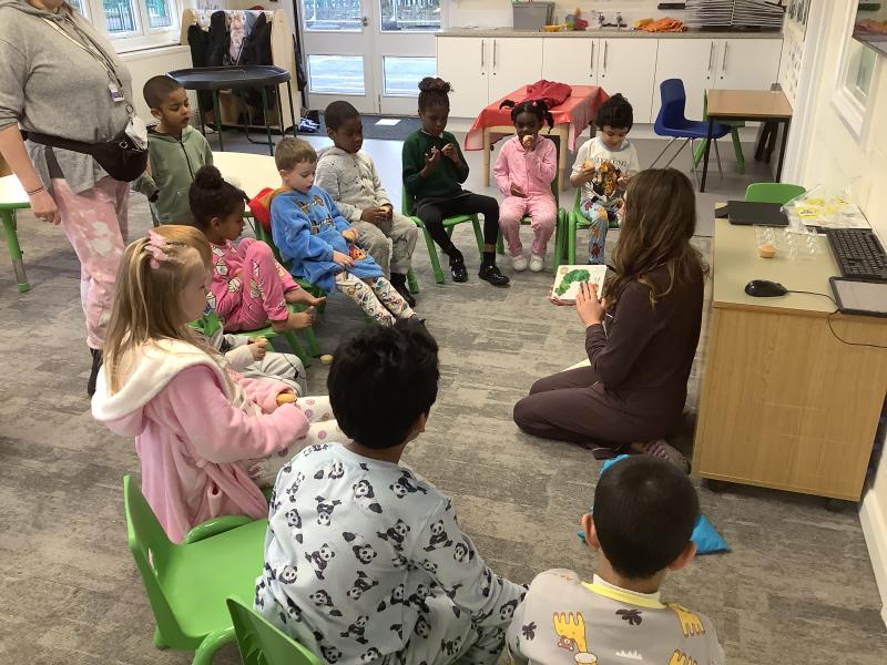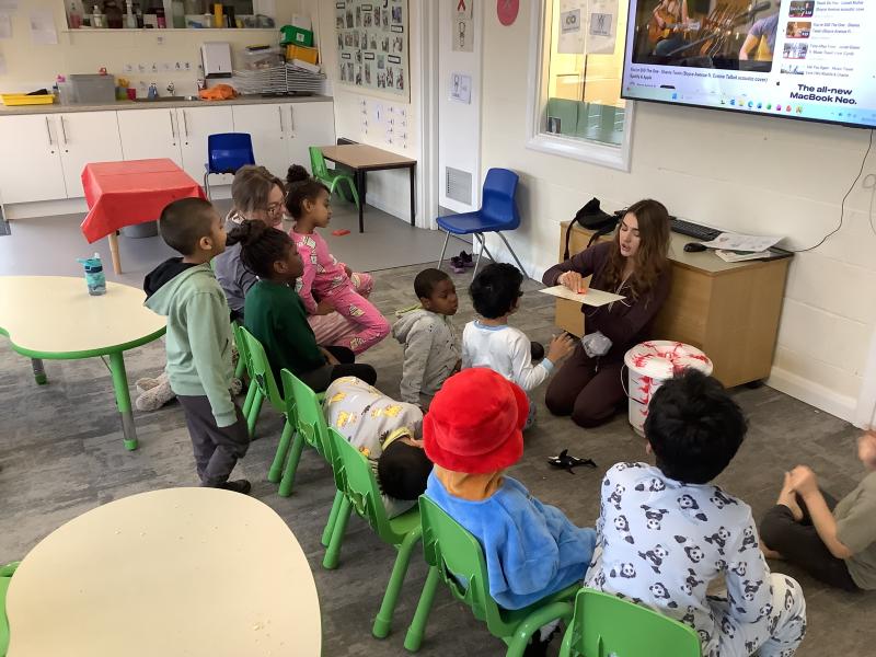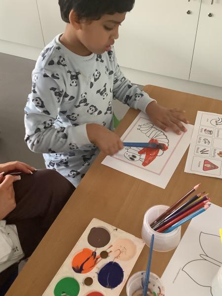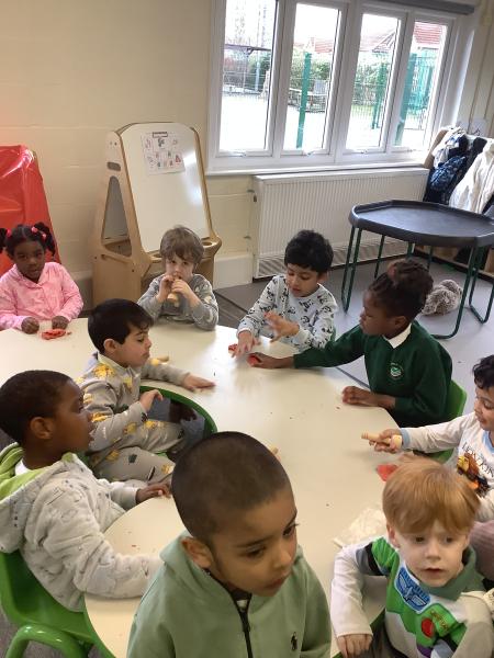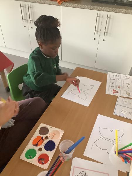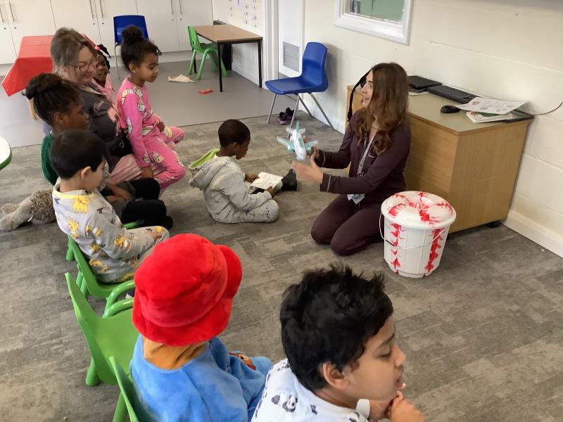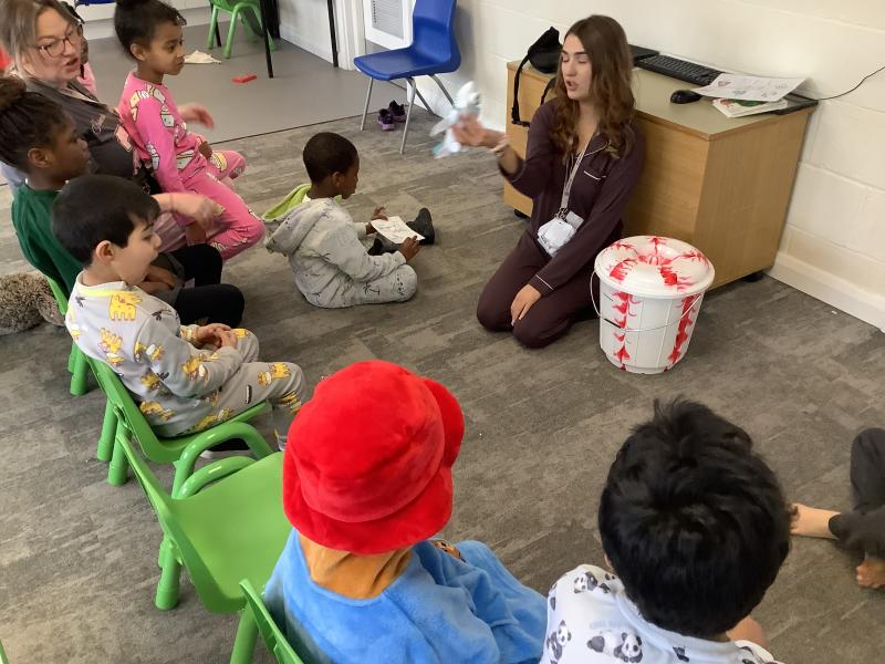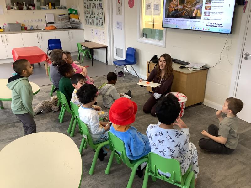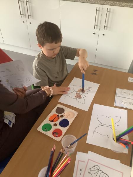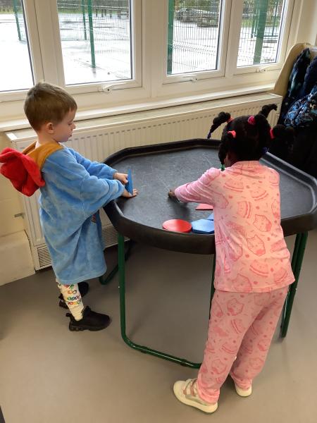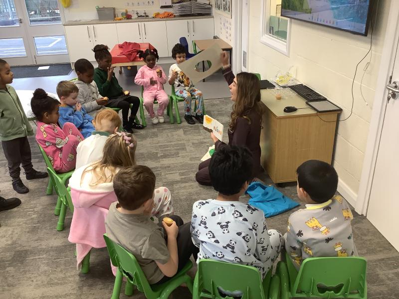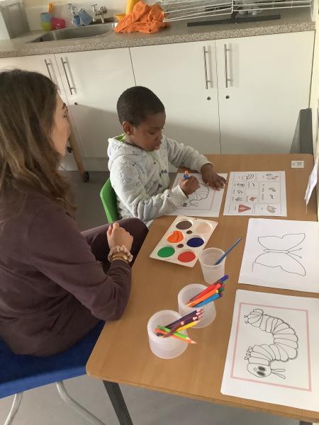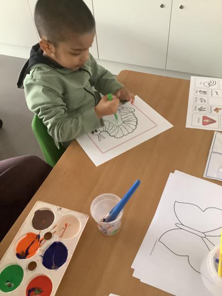 On Friday we celebrated world book day by wearing our pyjamas and completing activities based on the book ‘The Hungry Caterpillar’. In the morning, the children accessed the school library where the children were read the story and were able to engage with this (Marvel was our very own hungry caterpillar!). In the afternoon, the children got to choose to add colour to a caterpillar/butterfly using paint, felt tips or colouring pencils. After this, we engaged in sensory food play where the children were able to explore the different foods that the hungry caterpillar consumed.