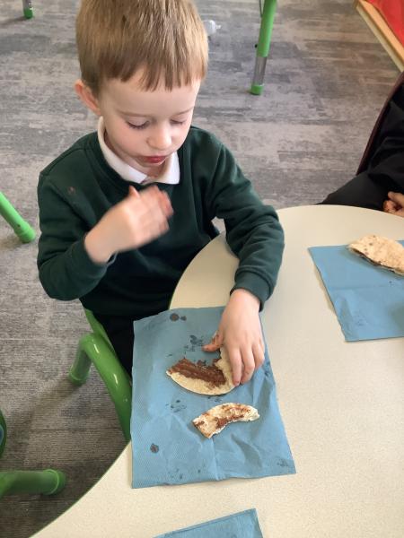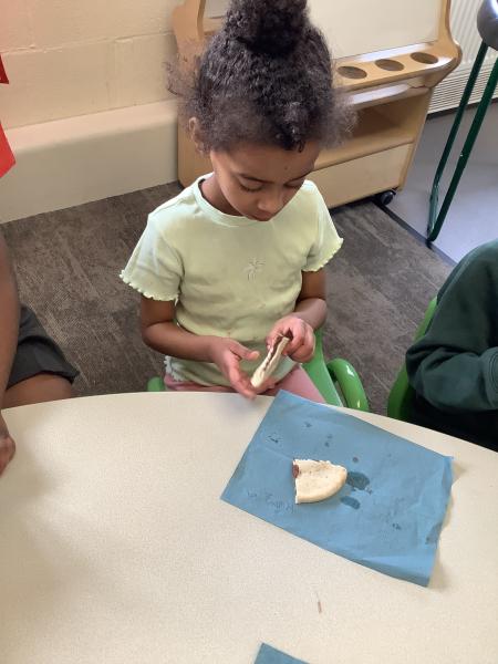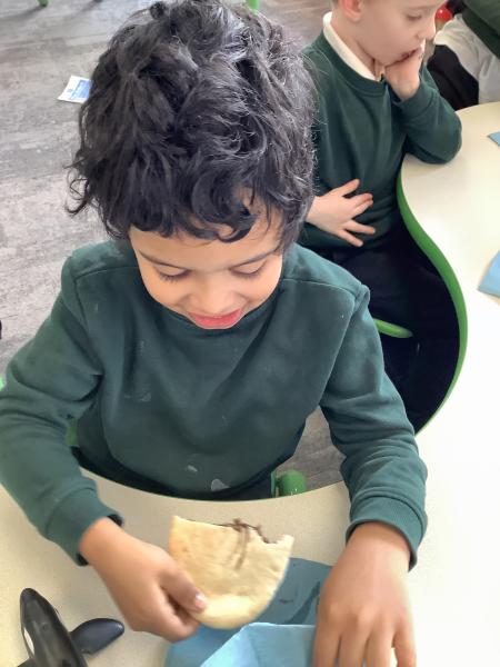 Our afternoon sessions this week have been sensory food play based. Our main focus has been pita pockets, the children got to choose fillings of their choice and then got the opportunity to enjoy them afterwards.
