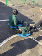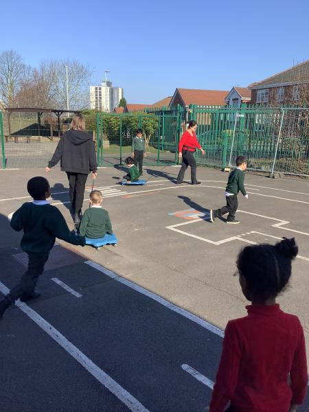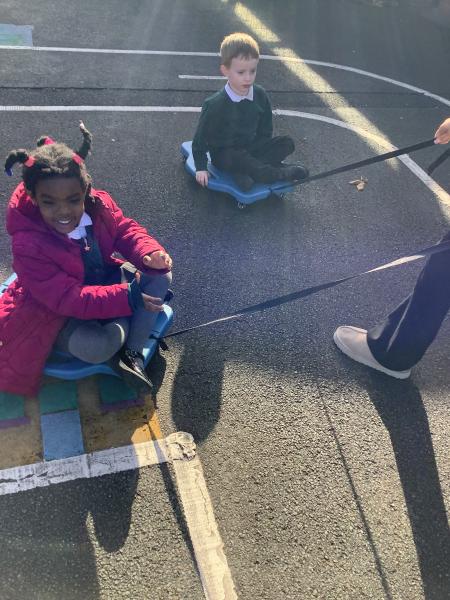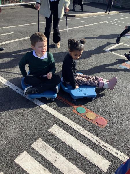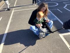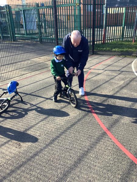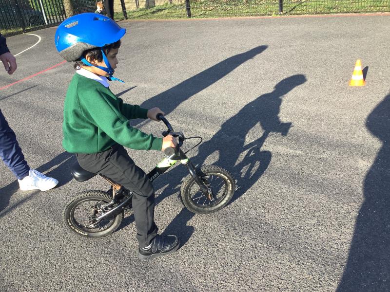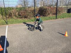On Tuesday, our reception children had another visit from little bikers and they were encouraged to ride the bikes between the cones.
