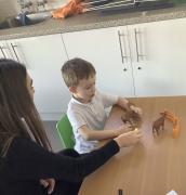 In identiplay, we have been focusing on the farmyard . The children are encouraged to follow a series of one step instructions by the adult e.g “cow. walk”. The children can then begin to implement this within the classroom during play.