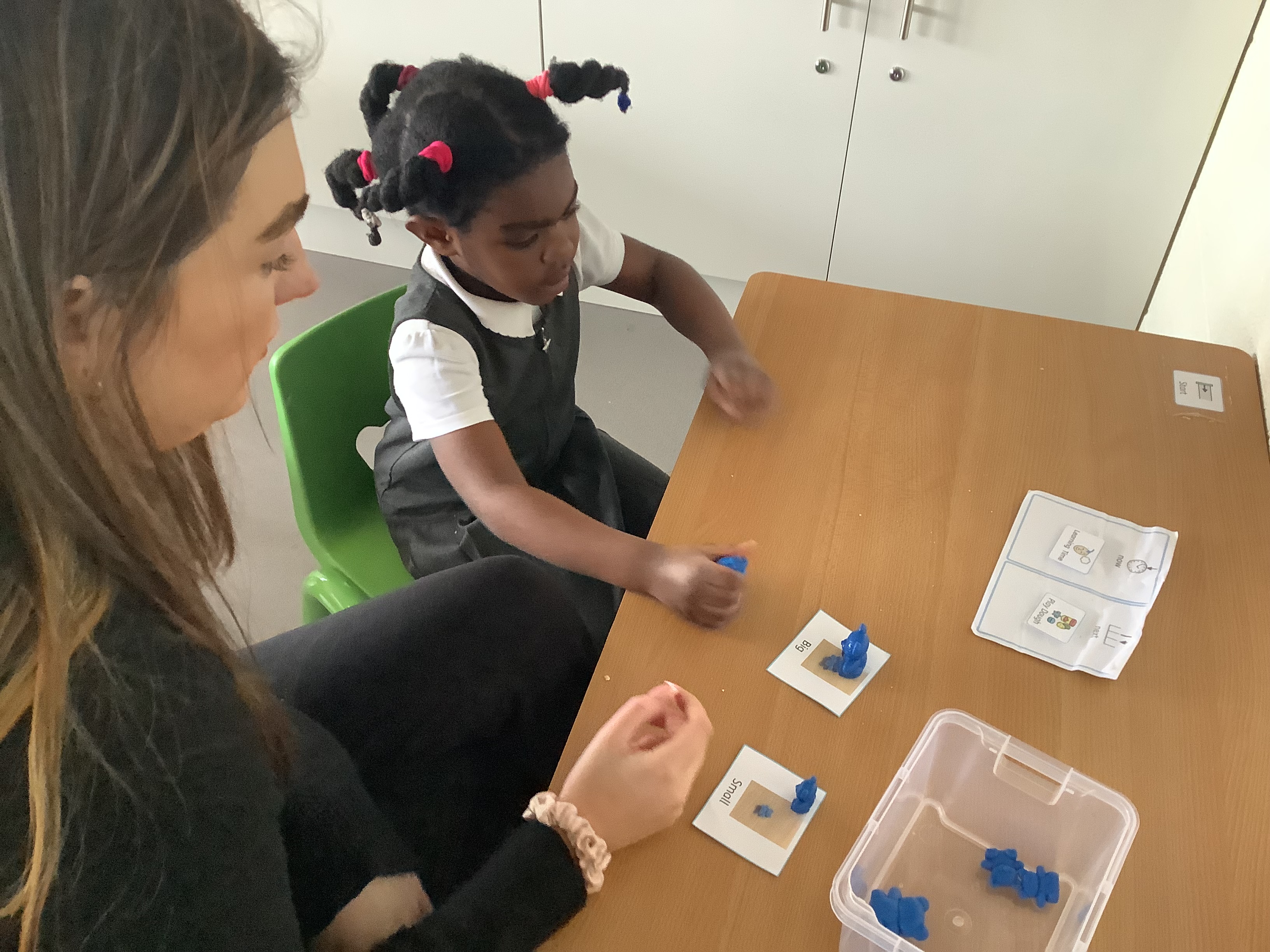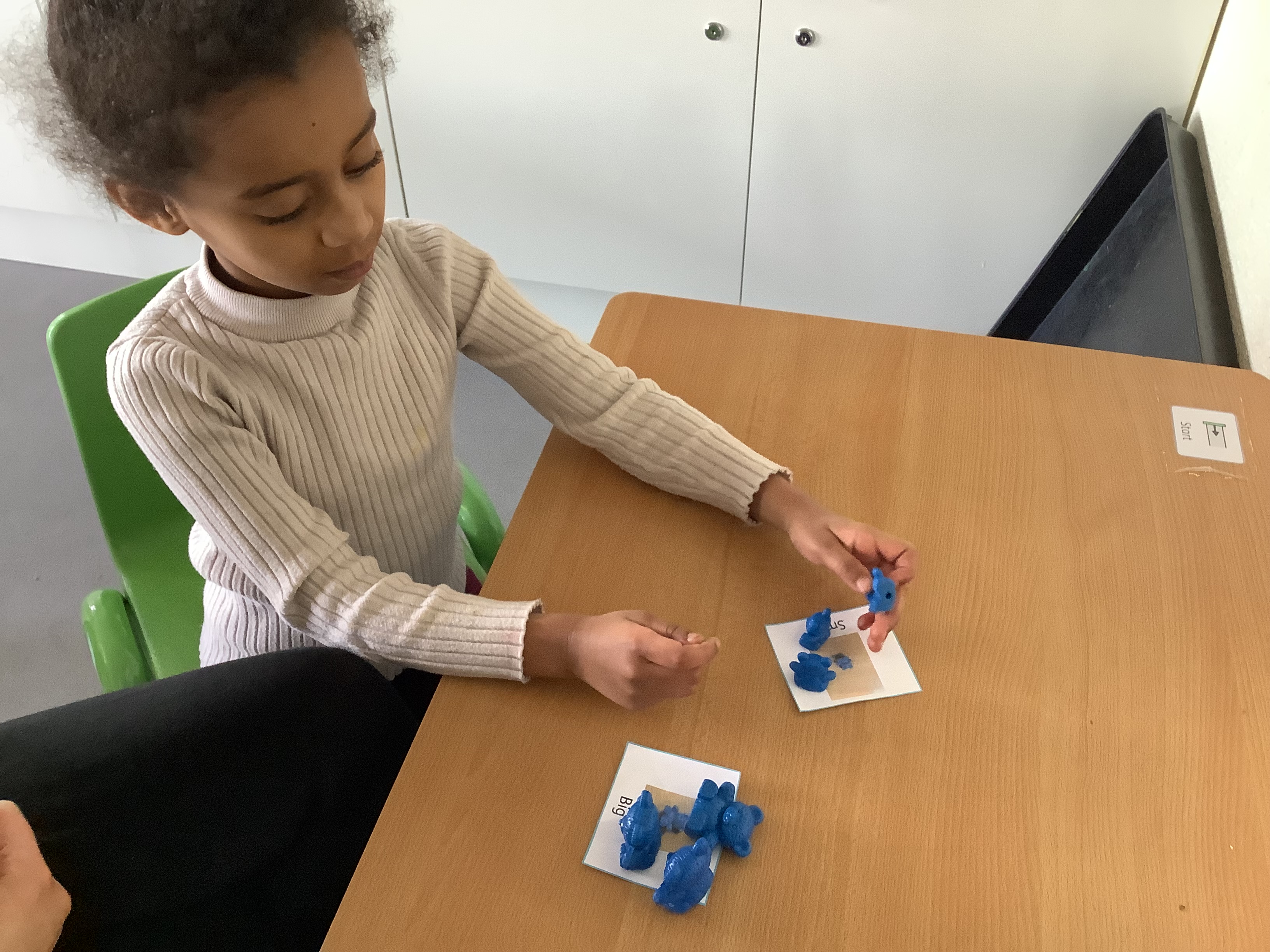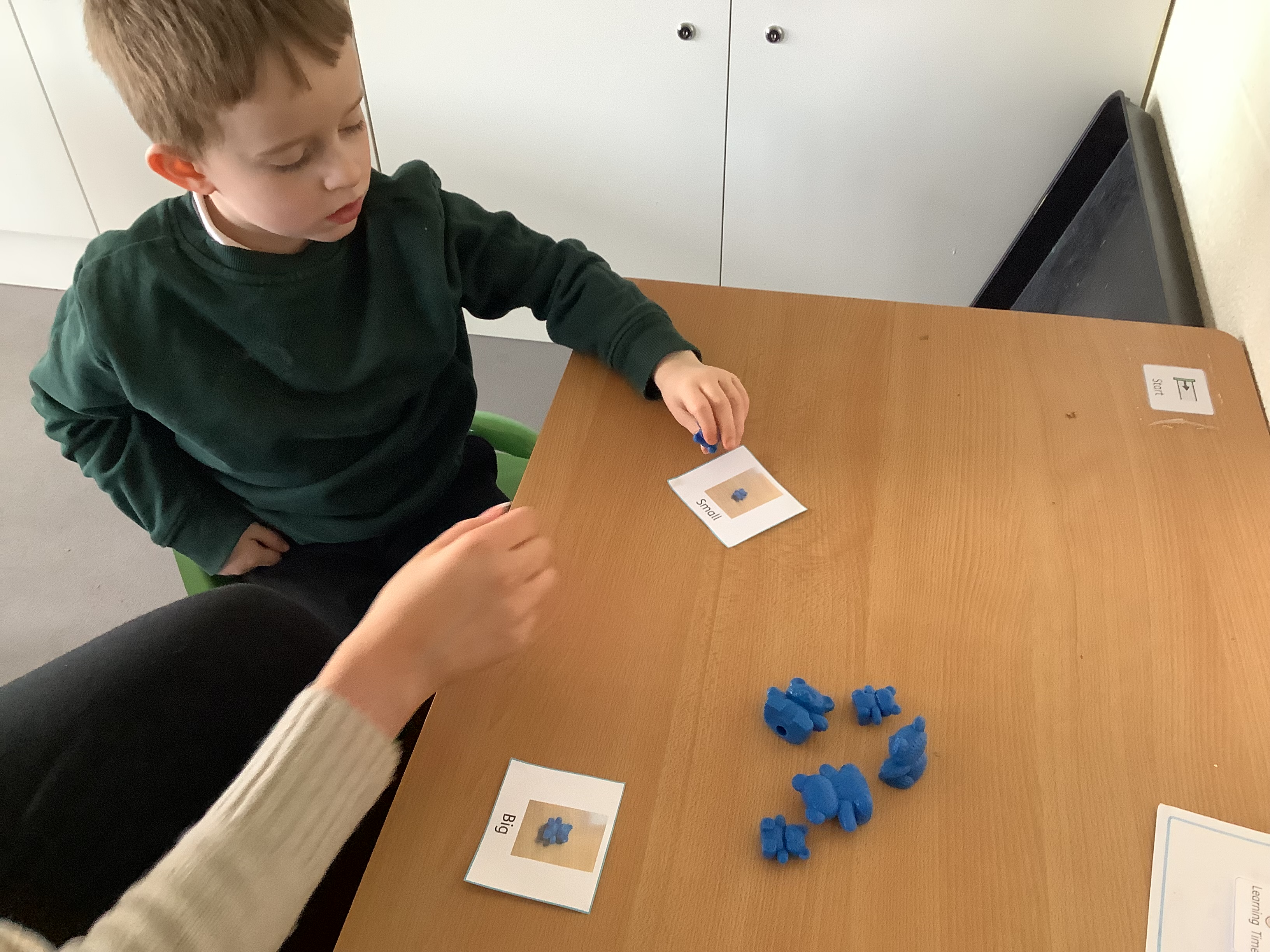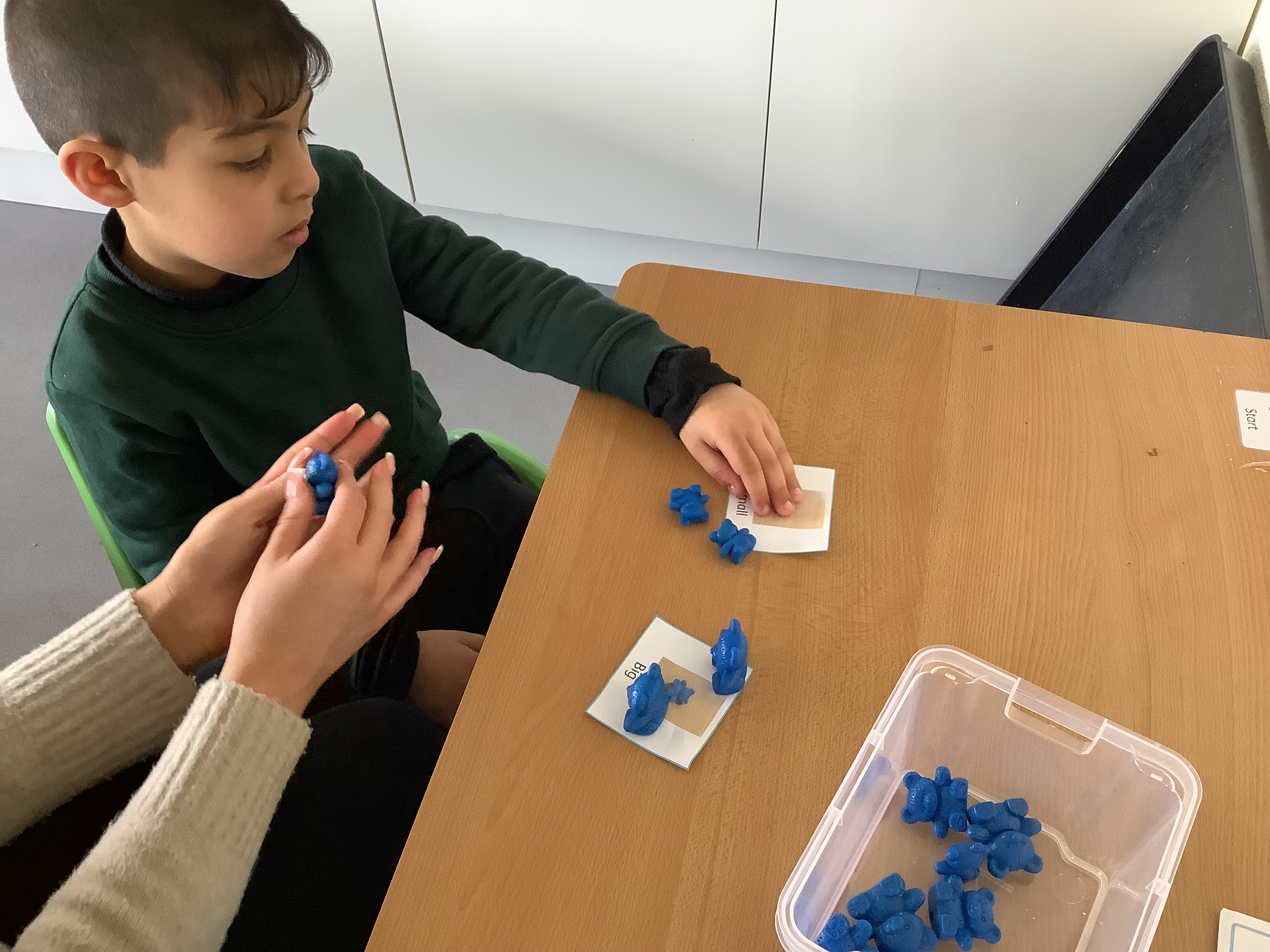 In maths this week we have been looking at big and small. The children have explored objects and adults have modelled the vocabulary “big” and “small” with visuals to support. We then moved on to sorting the objects into either big or small groups.