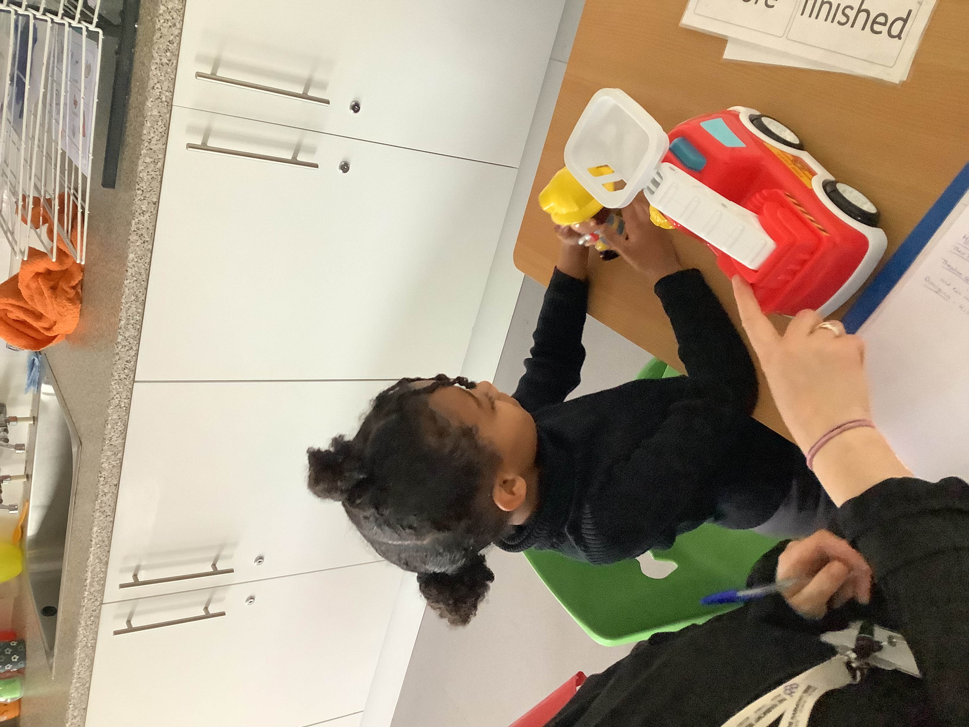 In identiplay, we have been focusing on man and car. The children are encouraged to follow a series of one step instructions by the adult e.g “push car”. The children can then begin to implement this within the classroom during play.