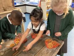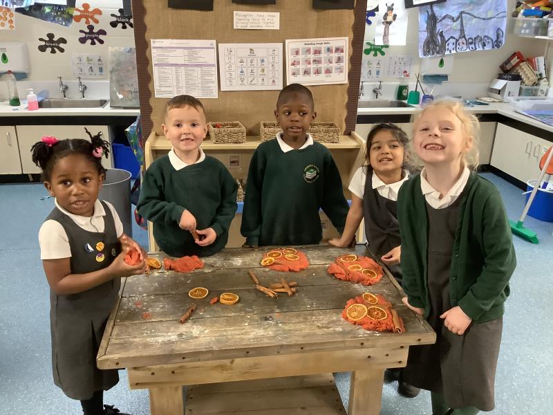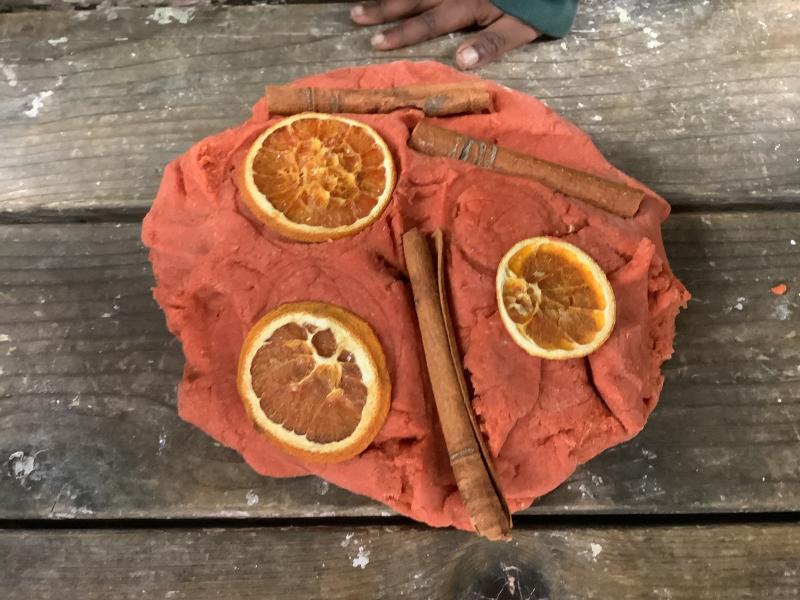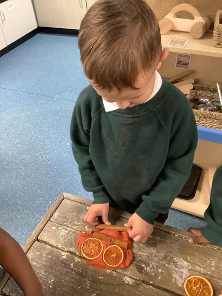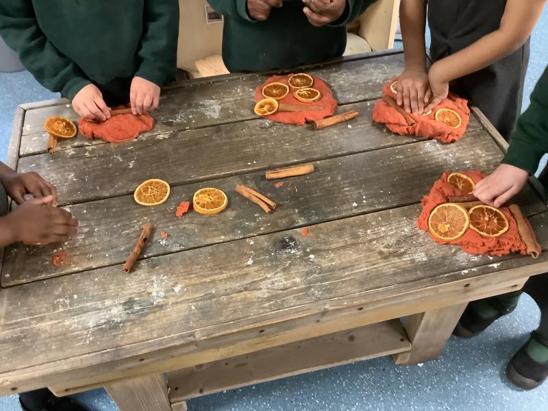 The children enjoyed making winter spice playdough. We added dried orange slices and cinnamon sticks. It smelt delicious!