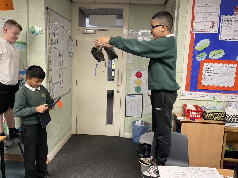 Sachar class planned and carried out an experiment to test air resistance and how it affects the parachute to fall. They changed the size of the material and the size of the string attached to see if this increased or decreased the speed.